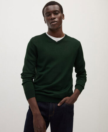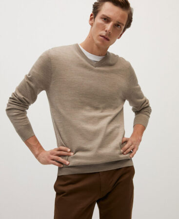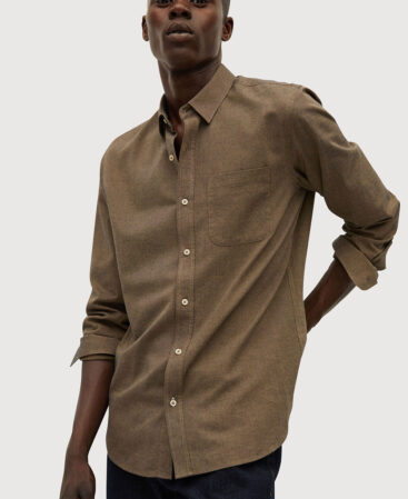 Lapel with notch. Back slit. Two pockets with flaps on the front. Button up.