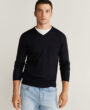 Lapel with notch. Back slit. Two pockets with flaps on the front. Button up.